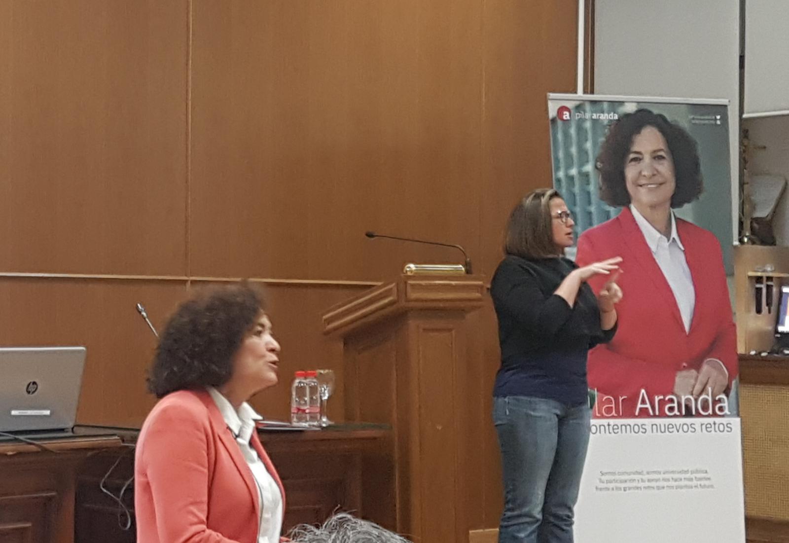 En las diferentes sesiones, Pilar Aranda hizo una ferviente defensa de la universidad pública, así como de un modelo de financiación que tenga en cuenta la calidad de la investigación de excelencia que se realiza en la UGR.